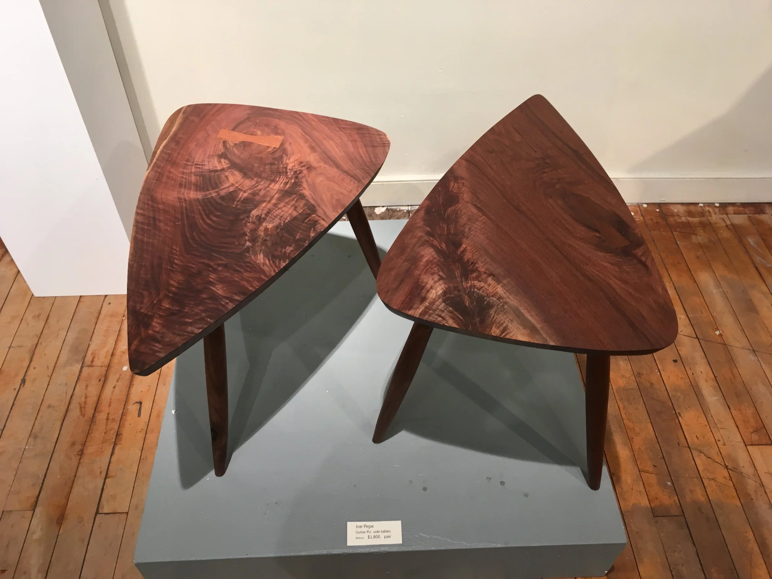 HIghly grained walnut guitar pic sidetables