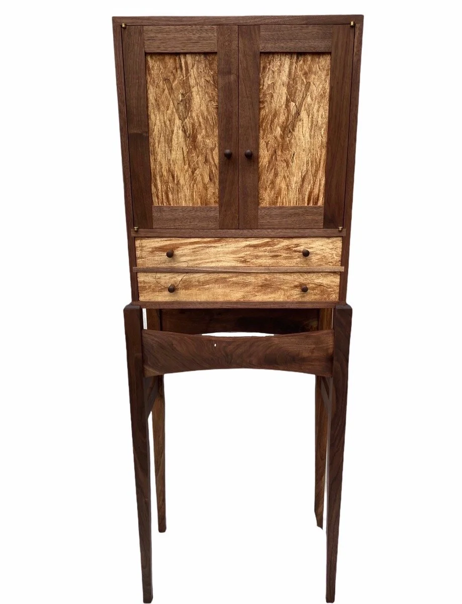 Walnut wall cabinet with book matched spalted maple doors with ebony pulls